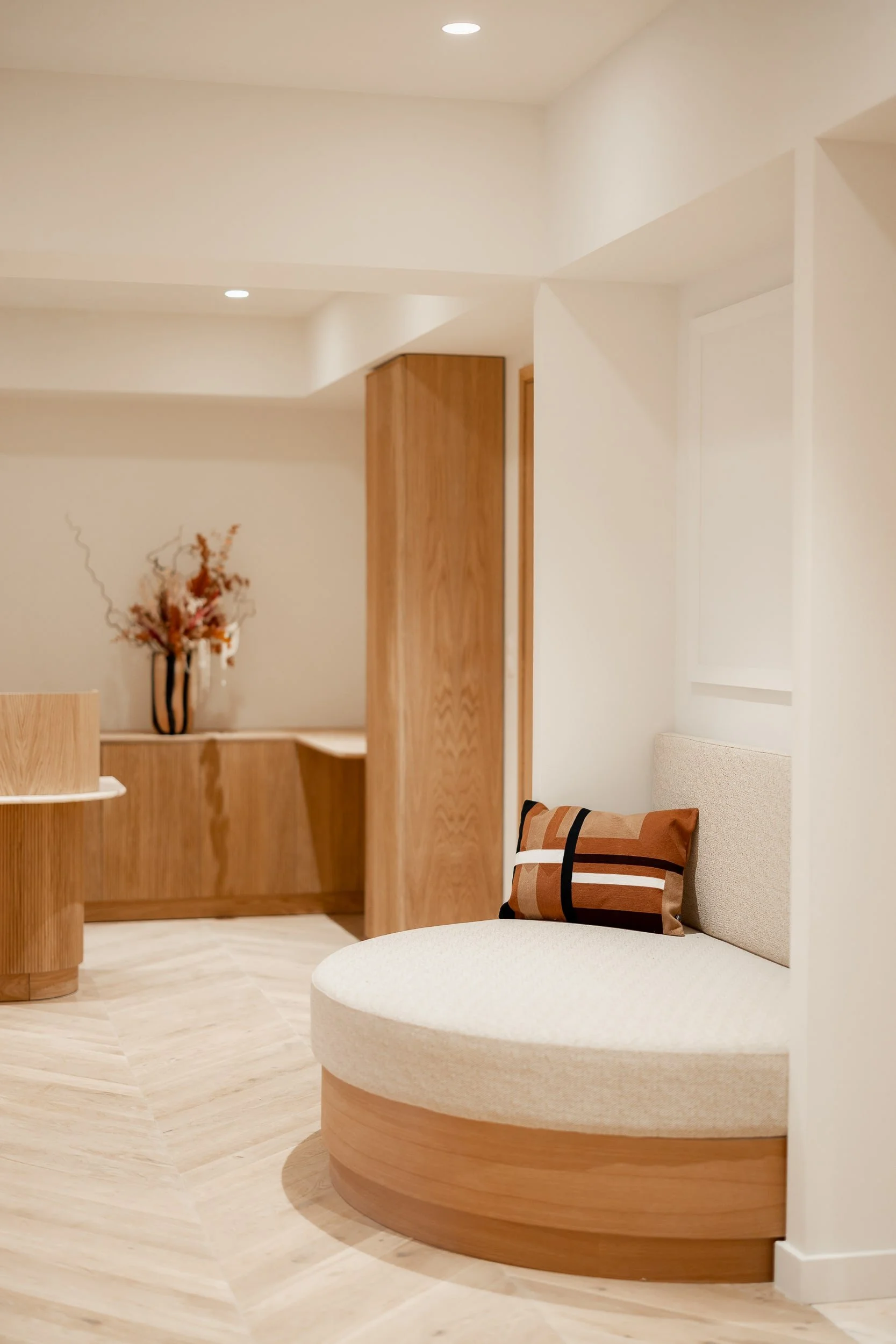 Un espace d’accueil pensé comme un lieu chaleureux et convivial pour les patientes, leur famille et les praticiens.